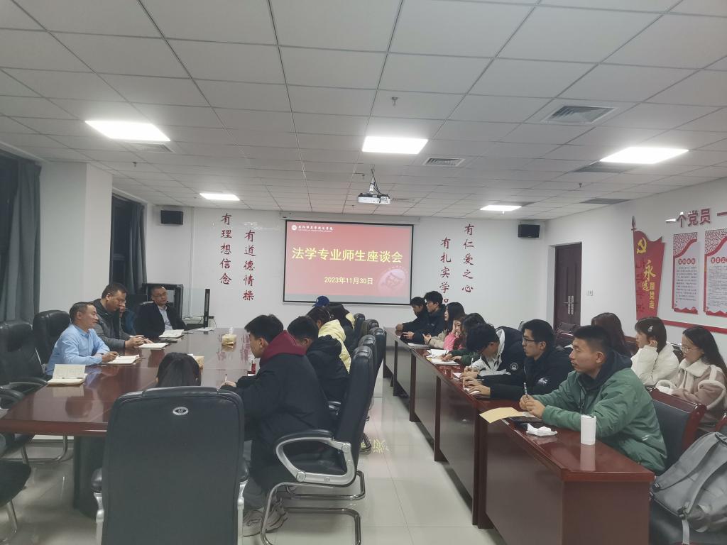 为了进一步加强师生之间的沟通交流,倾听员工心声,保障员工学习和生活,11月30日晚,法学专业在学院会议室召开师生座谈会,学院副经理胡伟、多位专业课教师和法学专业各班员工代表参加座谈会。法学系副主任张国强主持会议。