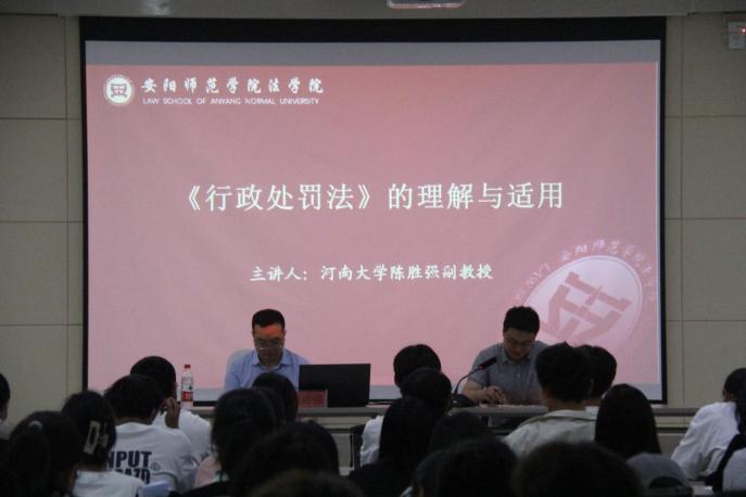 讲座由学术报告和职业规划研讨两个环节组成。在学术报告环节,陈胜强副教授就《行政处罚法》的内容、适用指引、依法行政与法治等问题,用真实生动的典型案例对我国现行《行政处罚法》进行了详细的解读。在职业规划环节,陈胜强副教授以自身的求学和成长经历对法律职业的类型及各类法律职业的知识和技能要求进行了解读,陈胜强副教授指出,理论与实践的结合是各类法律职业的基本要求,在职业类型的选择上应遵循各尽所能、扬长避短的原则。